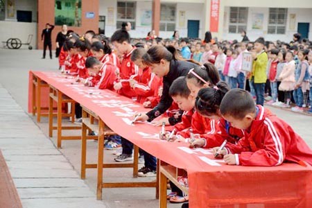 为引导学生从小养成良好的行为习惯、争做文明好学生,9日,县实验小学启动“养成良好习惯,助力五城联创”活动,召全体学生从各方面习惯的养成做起,为”五城联创“添光彩;近百名学生代表在写有“不丢一片纸、不折一枝柳,言行讲文明,联创争光彩”宣传标语的宣誓横幅上签名。