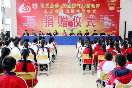本报讯 (记者王玮通讯员付培文) 17日是全国第4个扶贫日,湖北省阳光慈善物资中心积极响应省政协号召,助推精准扶贫,在化龙堰镇中学举办了“阳光慈善关爱留守儿童教育” 走进房县助推精准扶贫捐赠活动,向我县捐赠150余万元的教育和生活物资。