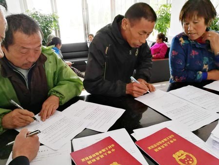 日前,在土城镇塘埂村农村土地承包经营权确权颁证现场,十余位群众从塘埂村村委会干部手中接过新土地承包经营权证。据了解,这是自土城镇农村土地确权工作开展以来,拿到农村土地承包经营权证新证的首批农民。