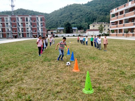 近日,土城小学学生正在老师的指导下开展足球训练。在国家义务教育均衡发展的促进下,该校建起了标准化足球场,把足球训练纳入体育课的重要内容,成立足球兴趣小组,让山里孩子也能实现足球梦。
