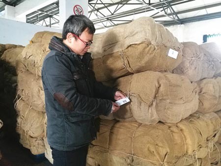 在今年的烟叶收购工作中,县烟叶分公司全面推行烟叶质量追溯系统,利用二维码贯穿烟叶收购调运“三打四扫”操作流程,完成烟叶验级、打包成件、仓储、库内抽检、出库调运等重要环节的全过程跟踪,串联烟叶收购的完整信息,最终每一件烟叶都能实现实时的质量追踪。图为野人谷烟站工作人员正在给烟包悬挂二维码标签。