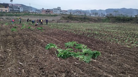 日前,记者在军店镇中村看到,群众正在将雪里蕻苗向大田移栽。据悉,今年秋冬季我县依托渝川食品公司实行统一供种、统一供肥、统一种植模式、统一技术服务、统一定价收购、分户种植管理的“五统一分”种植模式,计划建设三叶菜、雪里蕻等订单蔬菜基地2500亩。截至目前,全县已经移栽三叶菜、雪里蕻1000亩。