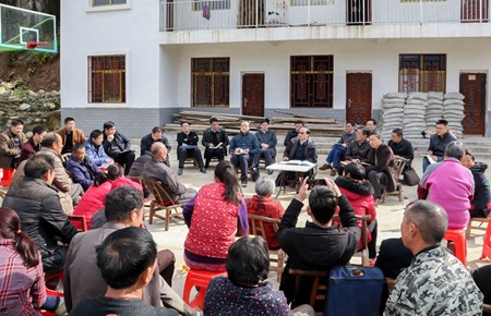 蔡贤忠围绕十九大报告的新思想、新论断、新提法、新举措,以十九大报告中“两个一百年”奋斗目标、实施乡村振兴战略、培育和践行社会主义核心价值观、加强社会保障体系建设、坚决打赢脱贫攻坚战等内容为切入点,向基层群众宣讲党的十九大精神。针对群众提出的河水污染、安全饮水、精准扶贫政策落实等问题和困难,蔡贤忠当即做出答复,将反馈的问题一一记录,并要求相关部门立即解决。