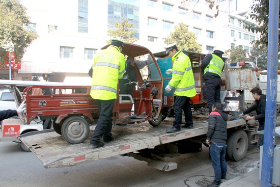 1月31日,我县在城区开展非法营运车辆综合整治工作。此次活动重点打击麻木车、违法营运车辆,对不符合安全规定的车辆进行扣留,对违法载客车主进行说服教育、行政处罚、暂扣营运执照等处罚,对质检不合格车辆予以报废处理,确保营运客货车运输安全,创造车辆、行人安全有序出行环境。(杨珩 何婷 摄)