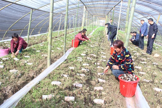 26日,红塔镇六谷村顺园种养殖合作社的羊肚菌基地里,菇农们正在采收第一茬羊肚菌。当日,县史志办“四双”帮扶工作到该村开展“五大行动”活动,并与镇、村及合作社谋划羊肚菌基地提高种植产出效益、拓宽销售渠道等工作,为当地村民增加收入出谋划策。(王玮 吴宏奎 摄)