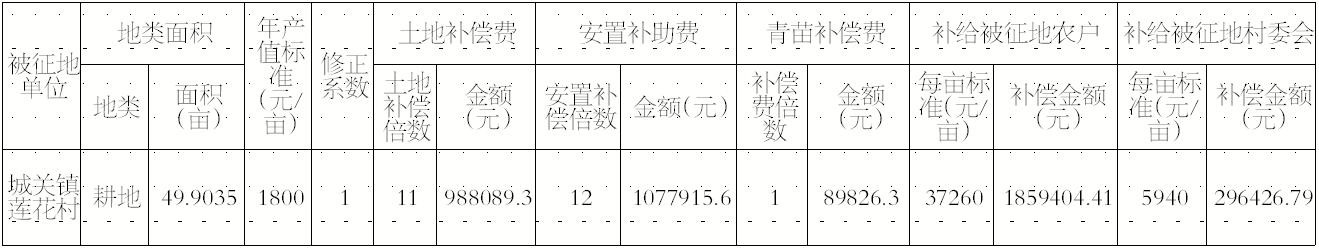1、被征收土地所有权:城关镇莲花村集体所有;