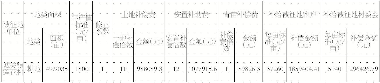 1、被征收土地所有权:城关镇莲花村集体所有;