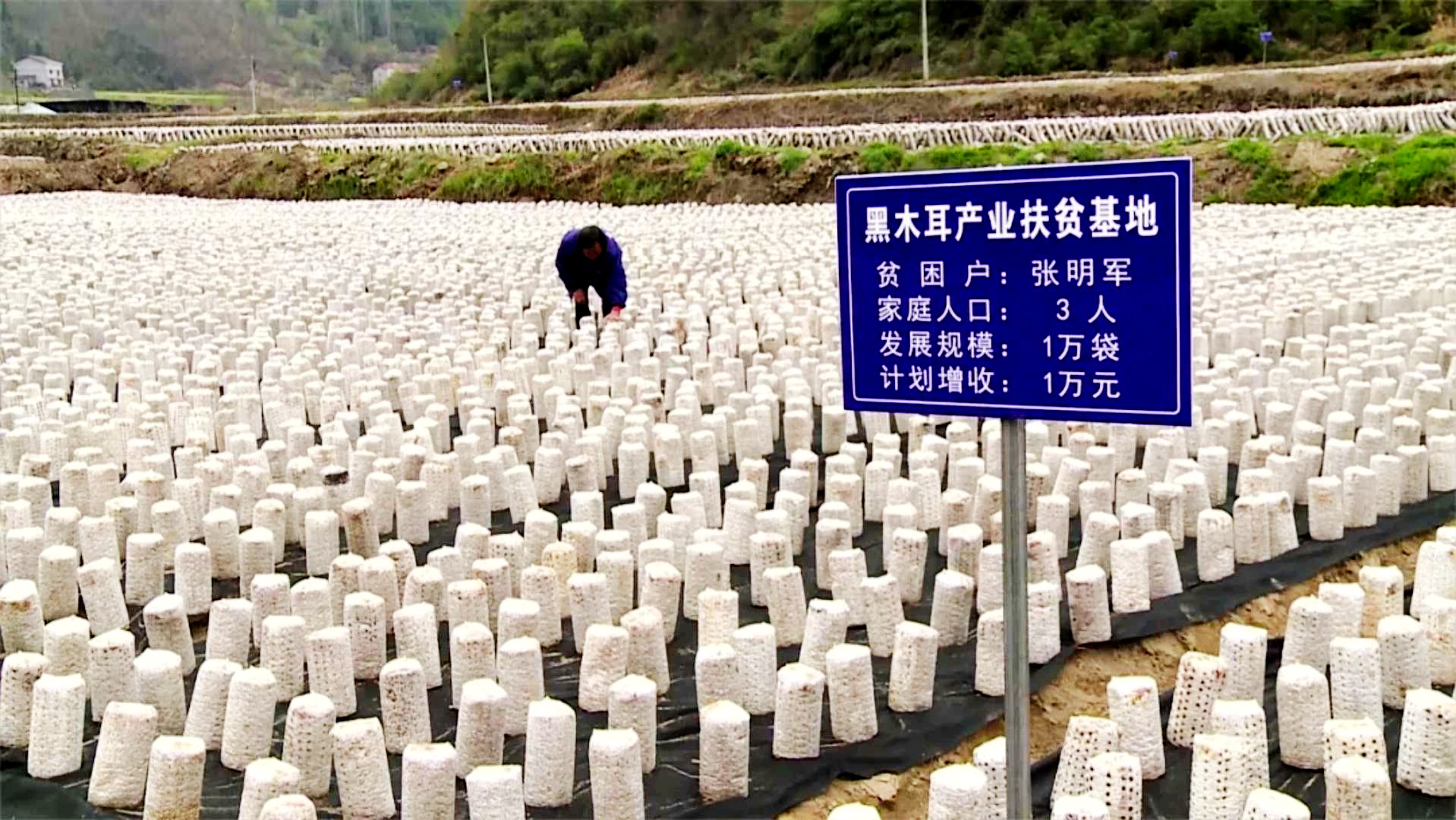 上图:入春以来,土城镇坚持以天禾食用菌产业合作社为依托,以通省村党支部领办的通达生态种养殖专业合作社为引领,以全面增强贫困户造血功能、创新袋料黑木耳春、秋栽培模式为手段,重手打造通省产业与搬迁相结合的示范片区,发展春栽袋料黑木耳40万袋,带动通省集中安置小区66户贫困户在家门口发展产业,就近务工,实现人均增收5000元的目标。(杨涛 摄)