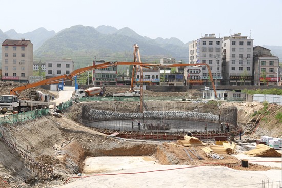 4月10日,城区污水处理厂提标升级改造工程的第一个辐流沉淀池开始进行混凝土浇筑施工。该项目设计处理生活污水能力为每天3万立方米,处理后的水质将提标达到一级A标准。 (王玮 摄)