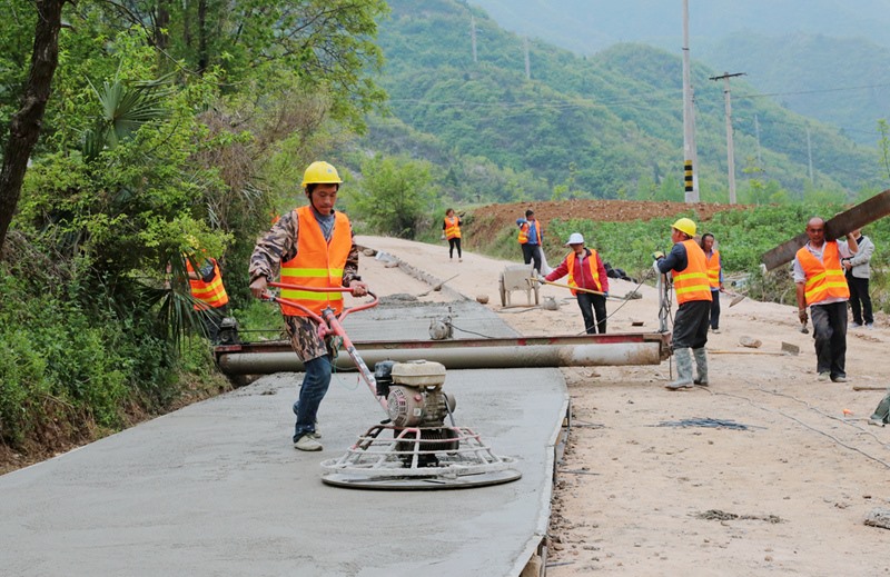 日前,军店镇指北村农村公路建设稳步推进,施工人员正在对硬化路基进行水泥路面铺设作业。据了解,今、明两年,我县将硬化农村公路1000公里,总投资8亿元,通过交通先行助力精准扶贫。