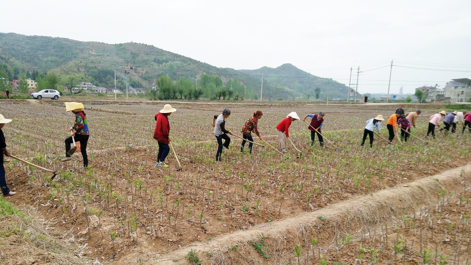下图:日前,在化龙堰镇上湾村苗圃基地,村民们正忙着除草、松土,该村围绕大产业,引导贫困户走“产业+基地+贫困户”的路径,把产业基地变成脱贫增收的车间,实现贫困户在家门口稳定脱贫。