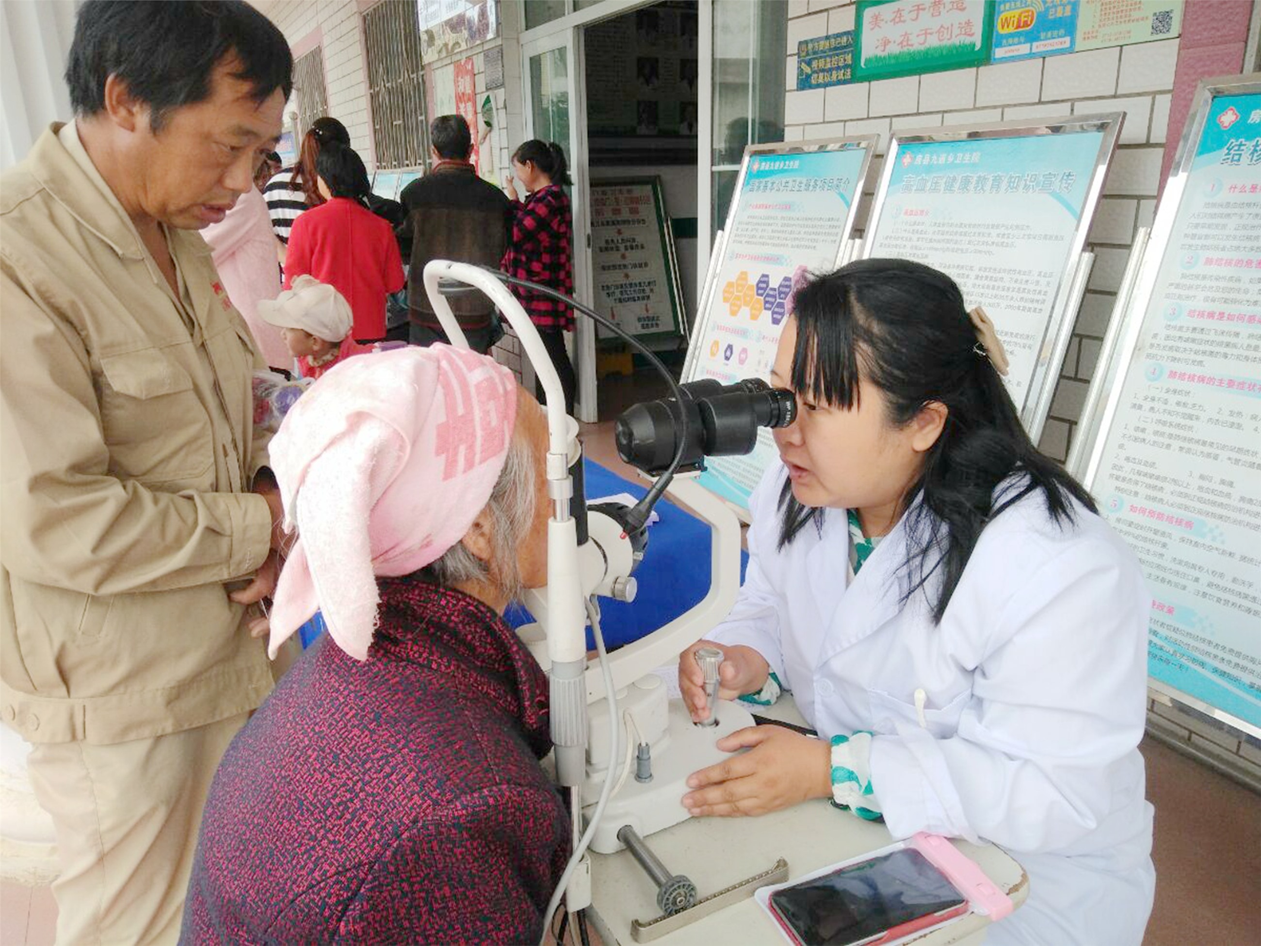近日,九道乡卫生院联合十堰市爱尔眼科医院,组织医生专家到村(社区)开展“5.29计生协会会员活动日”暨健康教育义诊宣传活动,现场免费为群众测血压、义诊、咨询服务。据悉,此次活动覆盖全乡9个行政村。2387人受益,查出眼科(白内障)病例38起,随同与专家到十堰市爱尔眼科免费做手术的8人,其他患者后期会到医院进行治疗。 (单玲 摄)