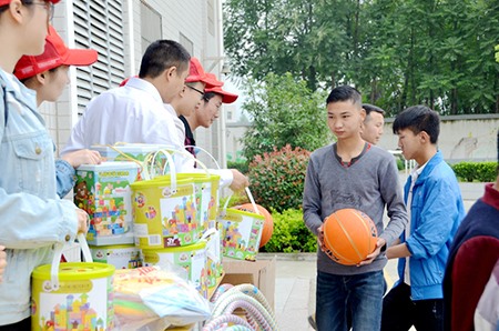 5月30日,县审计局志愿者们走进县特殊教育学校开展“欢庆六一,与爱同行”爱心捐赠活动,为孩子们移动音箱、篮球、呼啦圈、益智积木等节日礼物,并与他们一起拍篮球、转呼啦圈、搭积木,以多种方式和孩子们沟通交流。 (林鹏 蔡志强 刘彬 摄)