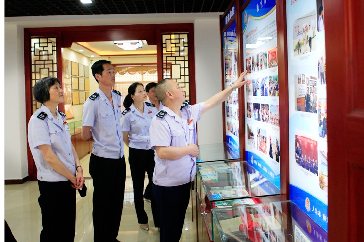 6月6日,“人和国税宣教馆”在县国税局开馆并迎来首批客人。该馆展出面积240余平方米,分为地域文化、品牌文化、忠廉文化、税家视野等6个展区,用图文实物对比讲故事,以人的发展、事业的发展和经济社会发展的脉络反映党的十八大以来该局在精神明文建设方面取得的成就,为基层文明创建单位树立起可学可看可以复制的文化标杆。 (叶倡见 摄)