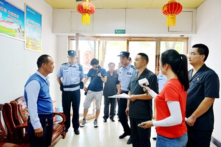 早上8点,直播准时开始,县法院共发动60余名干警,16辆警车参与本次雷霆行动。作为直播行动的“第一枪”,主播跟随执行法官来到位于红塔镇的某银行,现场对被执行人叶某宣读了拘留决定,实施了拘留措施。随后,执行干警又在位于城关镇联观社区某早餐店“堵住”了另一名被执行人蒙某,同样当场对其进行了拘留。在城关镇某布业公司,执行干警现场查封了一台8成新的丰田轿车和机械设备1854台,这些资产前期已办理抵押,后续将开展评估拍卖工作,及早变现实现申请人的权益。直播最后一站来到了青峰镇青峰村,执行现场,县法院院长王俊卿下令对一处20余亩涉案场地上的附属建筑物、沙场生产设备等进行拆除、清场。