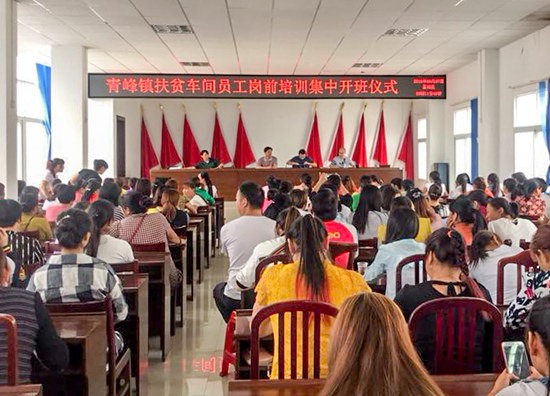 为深入实施就业脱贫工程,加快推进就业扶贫工作,青峰镇结合镇内六家扶贫车间实际情况,于9月7日举行扶贫车间员工岗前培训集中开班仪式,六家扶贫车间近两百名正式员工参加此次岗前培训开班仪式。培训人员就安全知识、产品质量和职业道德与职业操守等问题进行讲解、培训。(孙悦 肖飞 摄)