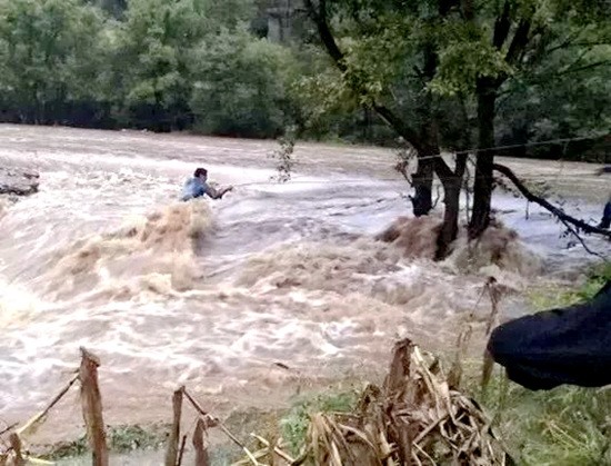 据了解,遇险的小货车上三人均是恩施籍,当日在九道乡糖坊村附近的林间采摘野生蜂蜜,傍晚时分准备驾车返回时,因道路情况不熟而误入一条废弃公路进入河谷,在没有一点征兆的情况下洪水突然下来,洪峰瞬间将他们拦截在河道中央的浅滩上,从而发生险情。