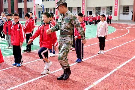 本报讯 (通讯员张军 欧阳亚陵) 为强化学生的综合能力,培养学生坚强的意志和吃苦耐劳的精神,进一步促进学生良好行为规范的养成,近日,县实验小学组织3至6年级2000多名学生开展“国防教育进校园”活动。活动邀请驻房部队的教官们给同学们授课,以班为单位主要开展包含了坐、立、行、走、队形队列等内容的军事训练。