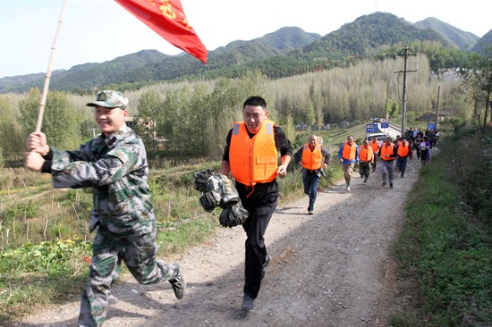 10月9日,红塔、回龙、城关等3个镇同步开展预防秋汛大演练。此次水库防秋汛实战演练模拟全县近日连续降雨,水库长时间高水位运行,出现险情,严重影响下游群众生命财产安全,必须立即组织危险区群众安全转移。参与演练活动的干部、群众达200多人,发放山洪灾害宣传手册及水库安全管理知识资料共1000余册。通过实战化演习,群众掌握了水库防汛安全应急避灾的技能知识,提高广大群众逃生自救的能力。左图为民兵应急抢险分队人员赶赴救灾现场。右图为演练宣传发动。