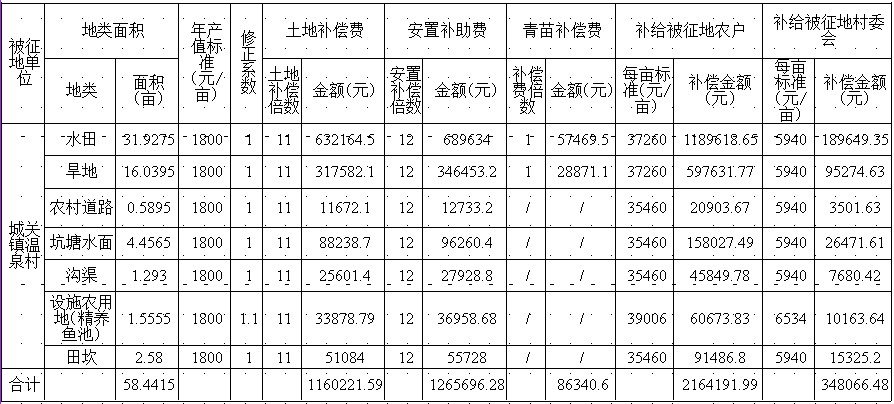 3、征收地类:水田、旱地、农村道路、坑塘水面、沟渠、设施农用地(精养鱼池)、田坎;