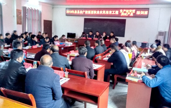 11月19日上午,由县农广校、县药材办共同组织的新型职业农民培育药材产业培训班正式开班,来自野人谷、门古寺、上龛、土城、军店、化龙等乡镇共60余名药材种植大户参加培训。此次培训邀请华农大教授孙学成、省级新型职业农民培育导师团老师夏俊涛等专家教授讲授《现代农业》、《道地中药材栽培》、《土壤与肥料》等知识。