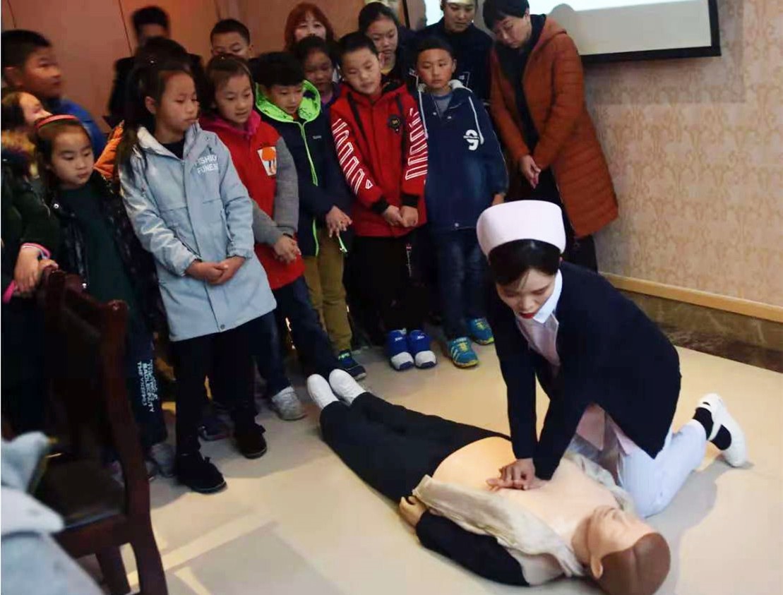 活动中,县妇幼儿保科医生为在场的老师和学生们讲解了保健院就医流程、紧急救护及心肺复苏术的步骤、方法等,模拟急救现场实操,并邀请学生和家长代表进行现场演练。通过此次培训,有效提高了学生和家长的安全意识,增强了急救知识和能力,为儿童安全和健康提供更加有力的保障。