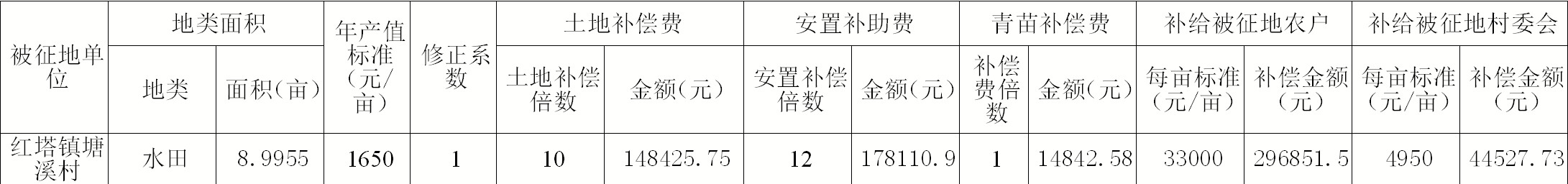 1、征地补偿标准:根据房县征地统一年产值标准,红塔镇属Ⅱ类地区,年产值标准为1650元/亩。具体补偿标准和数额见上表。