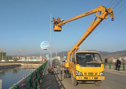 为了全面完成房县城市亮化工程,方便市民夜晚出行安全,10月初房县路灯管理所开始将全县主次街道3000多盏金卤灯更换为lED灯,LED灯具有亮度高,能耗低的优点。此次工作时间紧,任务重 ,房县路灯管理所组织全体职工加班加点施工,力争12月中旬全面完工。 (叶纬 摄)