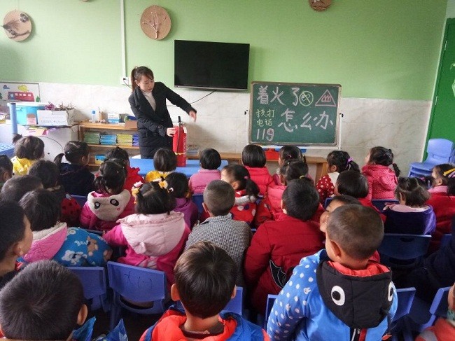 此次活动分消防安全知识培训和消防疏散演练。在消防安全知识培训环节,班主任利用多媒体及图片,结合实例向孩子们详细讲解冬季应怎样安全用电、火,在火灾中如何自救以及灭火器的正确使用方法等。随后,进行了消防疏散演练,随着警报声响起,幼儿们在老师的带领下,迅速用毛巾捂住口鼻,俯下身子沿着安全通道井然有序地撤离到安全场地。