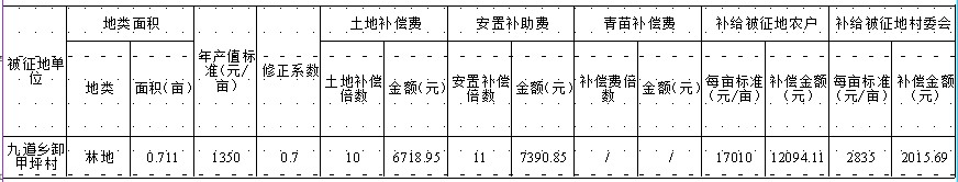 1、征地补偿标准:根据房县征地统一年产值标准,九道乡属Ⅳ类地区,年产值标准为1350元/亩。具体补偿标准和数额见上表。