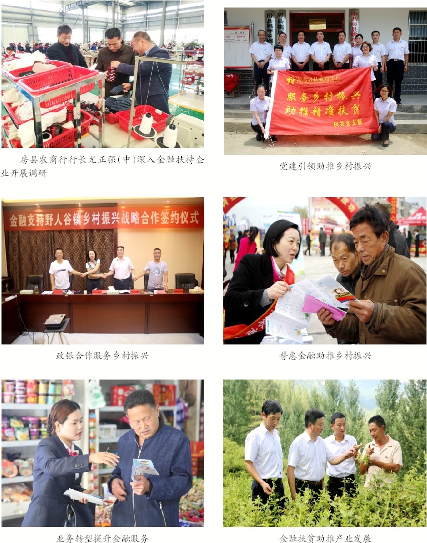 2018年,房县农商银行始终坚持服务“精准扶贫、乡村振兴”责任立本,创新开拓了扶贫“八大模式”,大力开展服务乡村振兴战略,累计发放扶贫小额贷款4.2亿元,助推了全县3.2万户产业精准脱贫。2018年,被湖北省银保监局授予“金融服务网格化精准扶贫先进单位”,在2018年度湖北金融扶贫公益行“扶贫好榜样”演讲比赛中荣获三等奖。