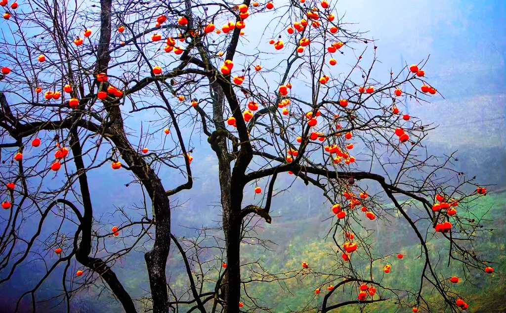 枝丫裸露在秋风里