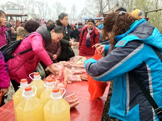 年货节现场,土猪肉、土鸡、黄牛肉、竹笋干、豆油精、香菇、木耳、干野菜、黄酒等特产正宗地道,深受外地游客喜爱;腊八粥、舞狮子、龙灯、唢呐、花鼓船歌等传统民俗展演热闹喜庆,让游客们品位到“老家”味道。两天活动中,市民和村民,人人喜气洋洋,各自满载而归。