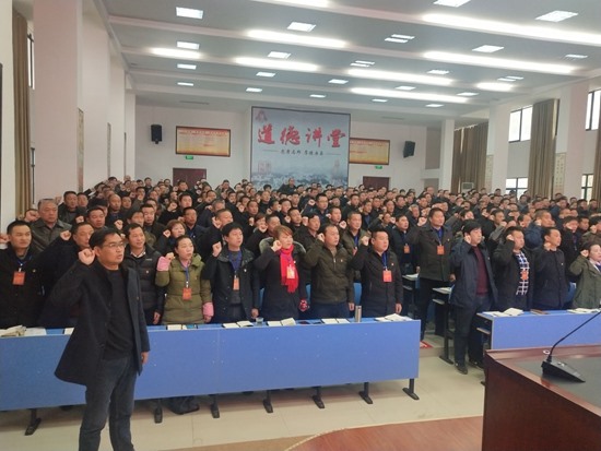 1月9日,为期三天的由县委组织部举办的房县新一届村(社区)“两委”主职干部培训班正式结业。全县299名新一届村(社区)“两委”主职干部参加了培训。图为参训干部在培训班上集体宣誓。