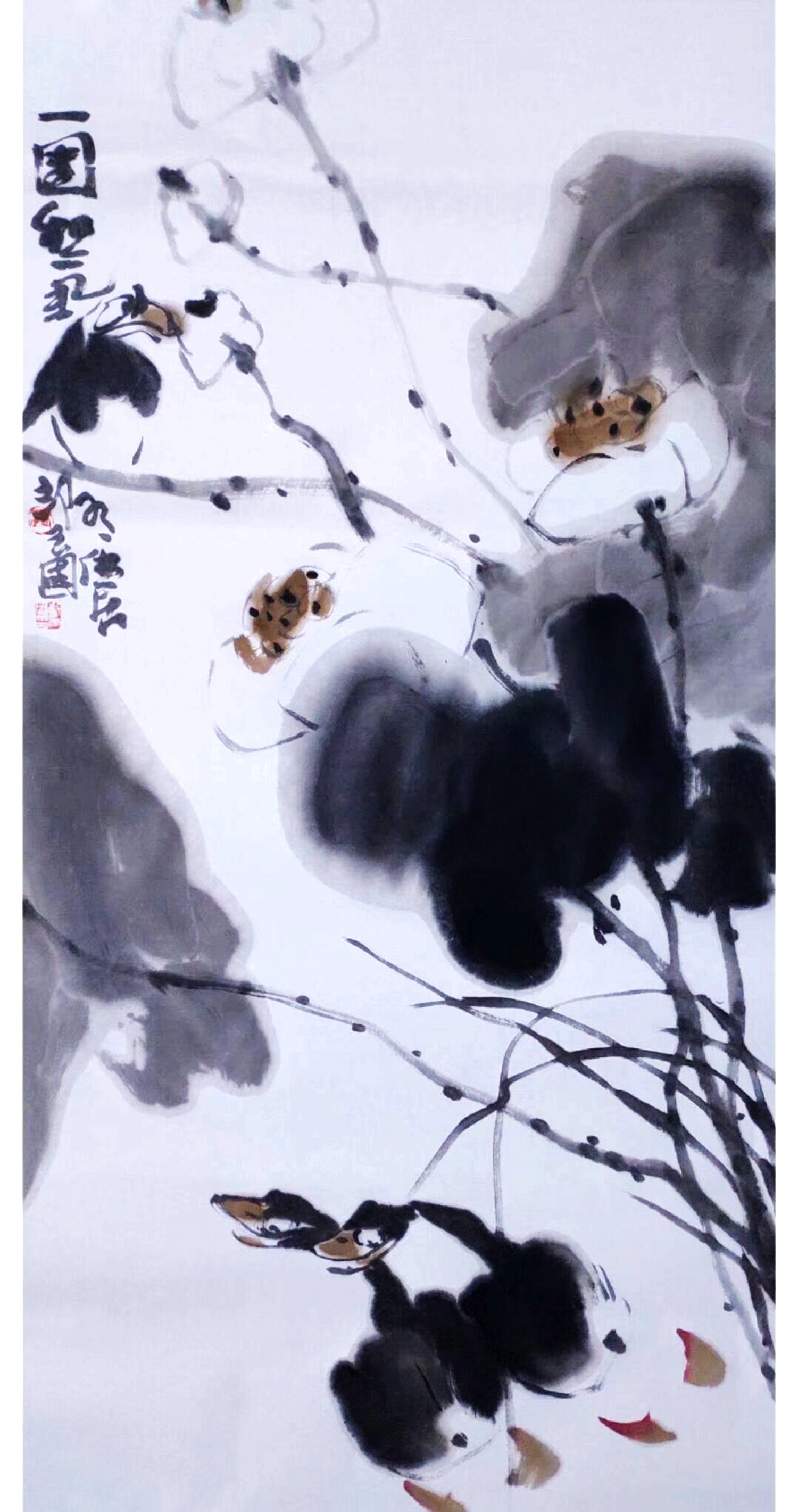 (郝玉国,中南财经政法大学教授,书画家。2018年10月17日受邀参加房县诗经(黄酒)文化旅游节。此画为其与房县书画家交流时创作。)
