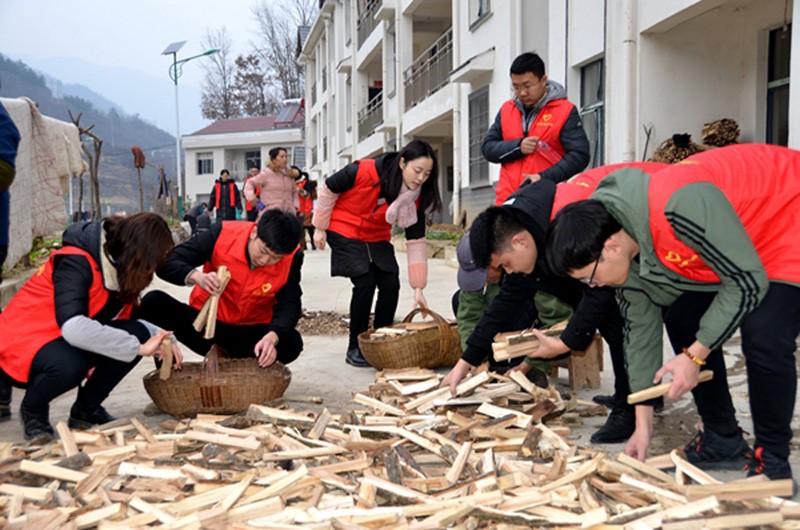 在该村老油坊小区,志愿者们为贫困户送上喜庆的春联,帮贫困户打扫庭院、清理客厅、厨房的卫生,帮助困难老人堆码木柴,对村民进行“四好”乡村建设和用火用电安全教育。