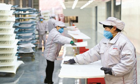 近日,在科博车业汽车内外饰件加工项目生产车间,工人们正在抓紧生产。该项目位于房县北城工业园,总投资8亿元,于2018年3月启动建设,建设厂房50000平方米,拥有大小注塑设备20台套、大型油压设备8台、全自动油漆喷涂流水线2条、装配流水线3条,2018年11月正式投产。目前实现产值830万元。预计2019年可实现产值3亿元,税收2000万元,提供就业岗位200个。 (全正 摄)