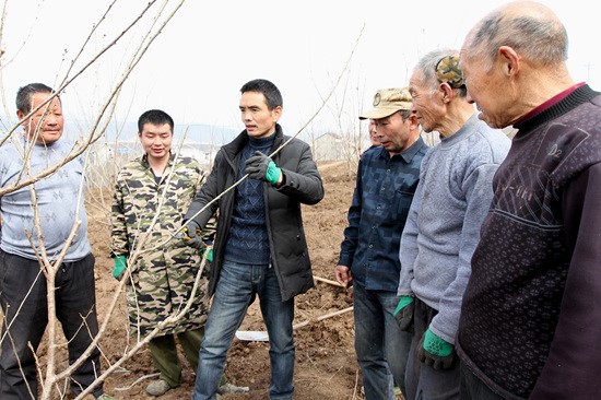 近日,城关镇八里望村樱桃产业大户李建明在向农民讲解樱桃树枝的修剪和树木的管理技能。李建明是国家级农业职业经理人、省级农村实用人才,近年来,他发展100亩樱桃苗圃园,为贫困户提供树苗。通过李建明帮助、带动,城关镇樱桃林达到6000多亩,510多户贫困户发展樱桃增收致富,2018年,该镇樱桃产业以及带动的观光休闲乡村游实现产值超过1亿元。 (张启龙 刘凤 摄)