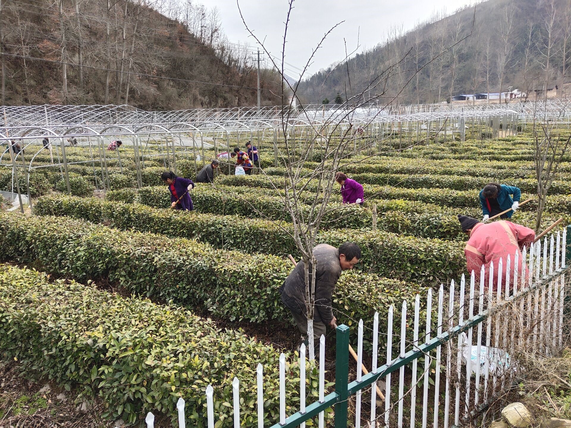 本报讯 (通讯员陈艳 刘坚) 3月6日,笔者在窑淮镇西沟村茶园看到,茶农们正忙着为茶园春耕、施肥、除草。