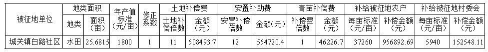 1、被征收土地所有权:城关镇白路社区集体所有;