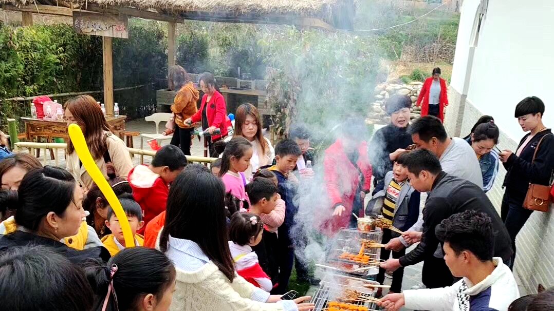 家住城郊的游客刘春华一大家,平时工作无暇能聚在一起,趁着天气晴好、清明小长假,亲戚姊妹团聚在一起,来到高桥赏乡村美景,通过“自助厨房”的方式,提前在超市购买了食材带到这边, 一起动手择菜、穿烤串、炖肉炒菜等玩的不亦乐乎。
