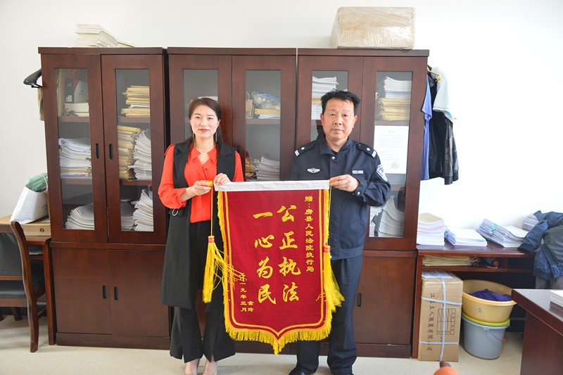 本报讯 (通讯员刘睿) 日前,家住城关镇的金某来到县法院执行局,向执行干警胡厚汉赠送了一面锦旗,表达诚挚的感谢。