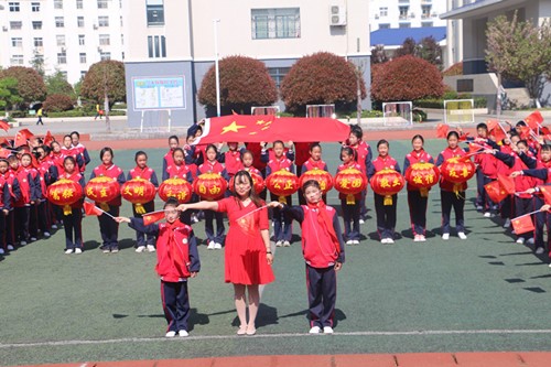 4月12日,县委宣传部、县融媒体中心走进东城小学,录制房县版快闪《我和我的祖国》视频。东城小学100多名学生时而挥动着鲜艳的小红旗,时而手提写有24字价值观的灯笼,用歌声表达他们对伟大祖国的美好祝愿。 (李英 摄)