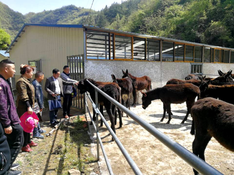 近日,军店镇组织村干部参观三溪沟村天晨种养殖专业合作社养驴场。今年初,三溪沟村引进房县天晨种养殖专业合作社,流转租赁200余亩土地和荒山给该社使用,以“三金”链接模式投入运营。目前该社已投入资金近100万元,修缮厂房20间,购进驴仔100头;为周边群众提供间续就业岗位20个,受益群众达28户,其中贫困户12户。 (刘智宝 摄)