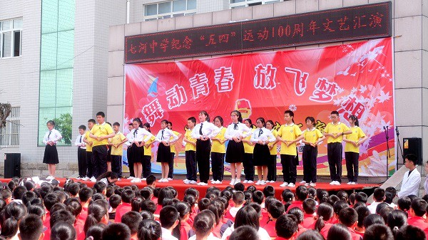 为纪念五四运动100周年,继承和弘扬“五四”精神。近日,红塔镇七河中学举办以“舞动青春,放飞梦想”为主题的文艺汇演。演出中,幽默诙谐的相声、具现实意义的小品、纯熟的武术操表演、意蕴深邃的诗歌朗诵、古色古韵的中国舞、内涵深远的手语舞等节目轮番上演,充分展现了学生们热情向上的精神风貌。(李斌 摄)