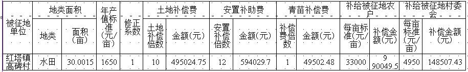 根据房县征地统一年产值标准,红塔镇属Ⅱ类地区,年产值标准为1650元/亩。具体补偿标准和数额见上表。