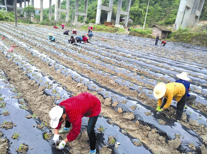 近日,窑淮镇界山村村民正在抢抓墒情移栽辣椒苗。为确保幼苗移栽顺利推进,该镇协调农机具10余台套,资助合作社新购开沟覆膜机2套,同时,组织农技和农机工作人员深入田间地头,现场指导农户使用农机具,并帮助农民解决生产中遇到的技术难题。据悉,该镇今年计划种植辣椒800亩。(徐江垚 刘坚 摄)