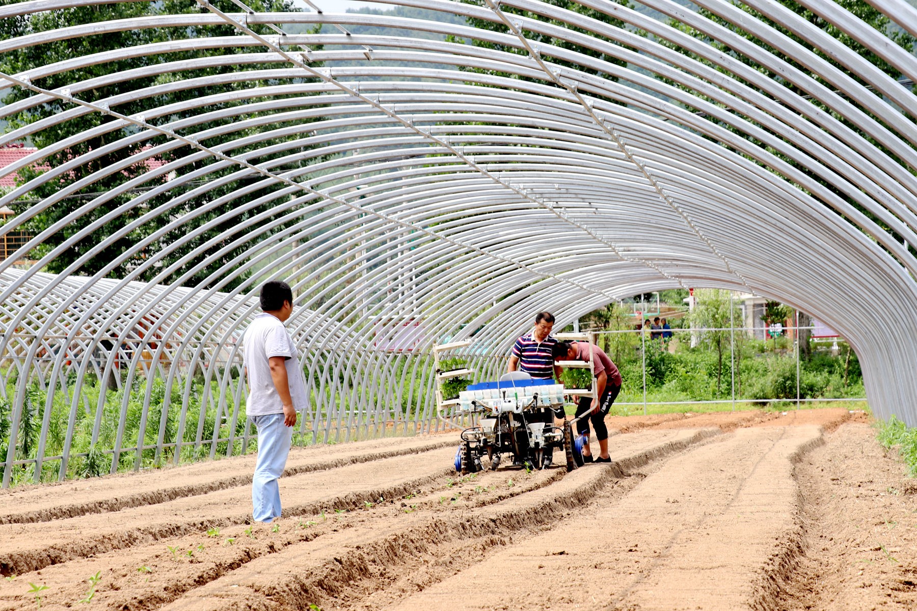 近日,化龙堰镇上湾村村民正在农机专家的指导下,使用新型秧苗移栽机移栽辣椒秧。当天,湖北省蔬菜生产机械化试验示范机具移交仪式在上湾村举行,该项目对提升丘陵山区蔬菜种植关键环节机械化水平,提高蔬菜产业生产效率,打造可感知、可复制、可推广的示范基地,助力丘陵山区蔬菜产业化和规模化发展有深远的意义。