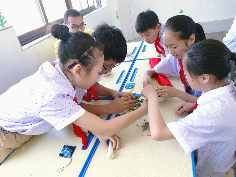 为了让小学生们近距离感受中医药文化魅力,近日,湖北中医药大学师生走进思源实验学校,将精心准备的艾草、薄荷等常用中药材,以及药钵、香囊袋、针线等香囊制作材料搬进了课堂。跟随着老师的讲解,孩子们进入了神奇的中医药世界。在老师指引下亲手制作香囊的过程让他们印象深刻,也更容易记住老师讲解的中药材相关知识。