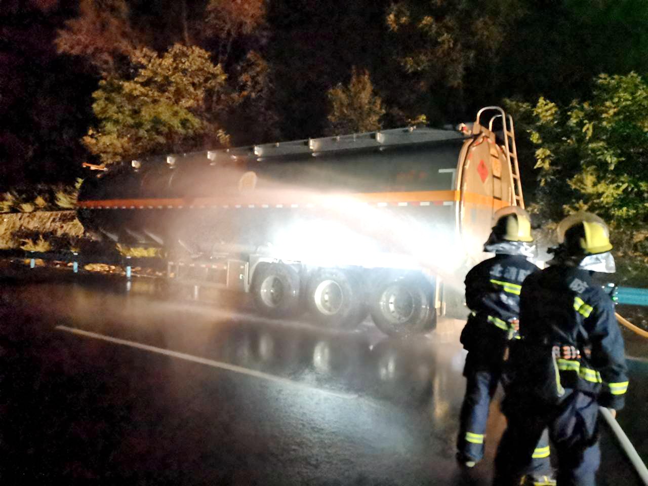 本报讯 (通讯员金伟忠 李飞) 8月22日晚上,一辆装载33吨柴油的油罐车行驶至G4213麻安高速公路谷竹向K463+900处房县军店路段发生轮胎自燃事故,险情万分危急。